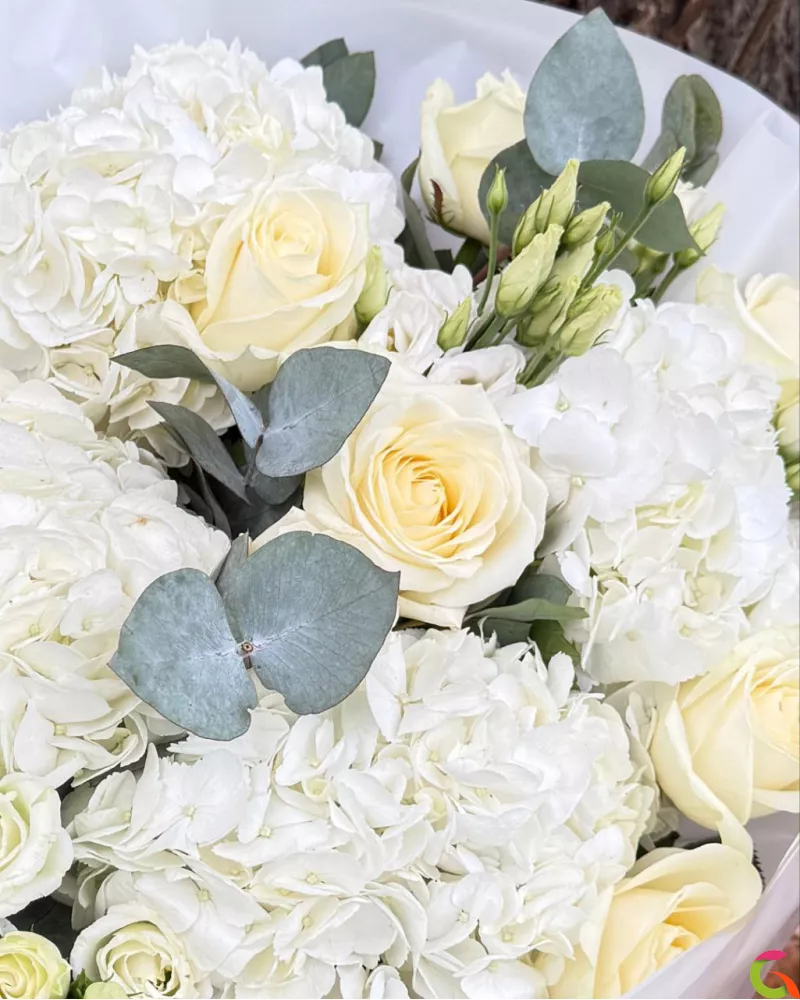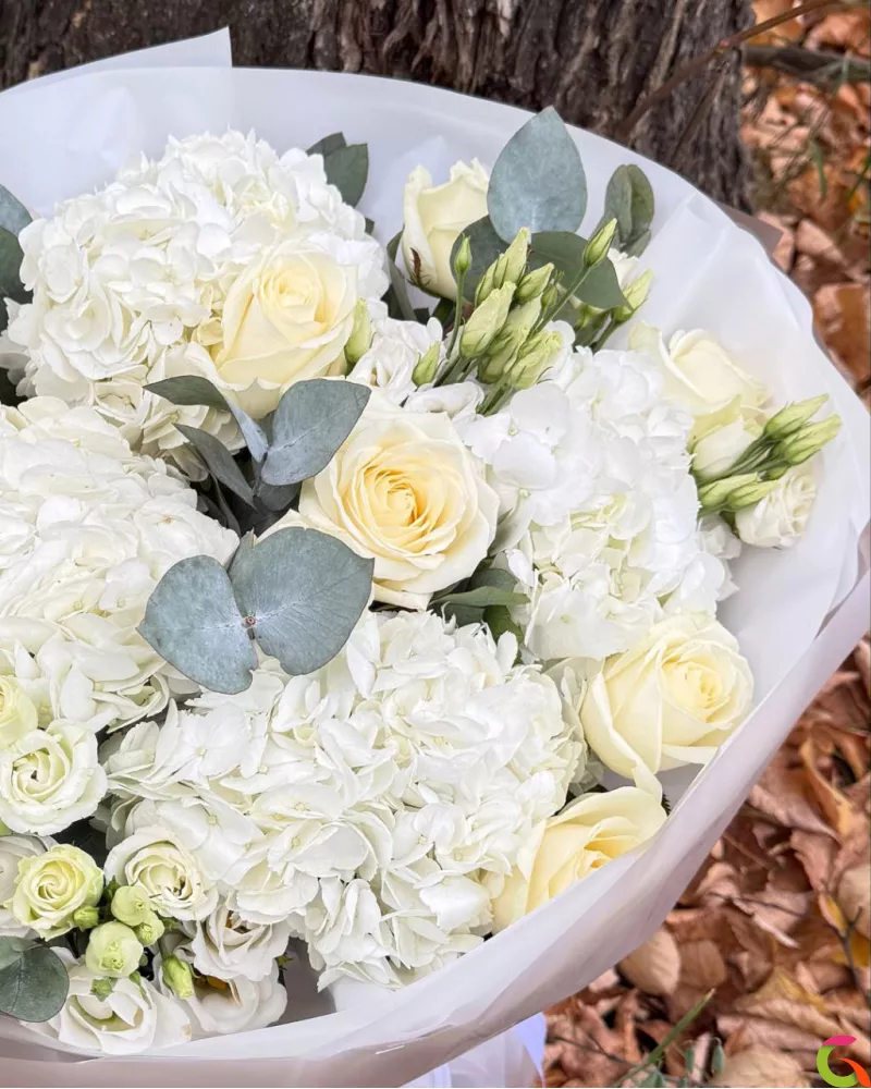 Этот букет — идеальный выбор для свадьбы, юбилея или как изысканный комплимент, который надолго останется в памяти. Подарите облако нежности и совершенства