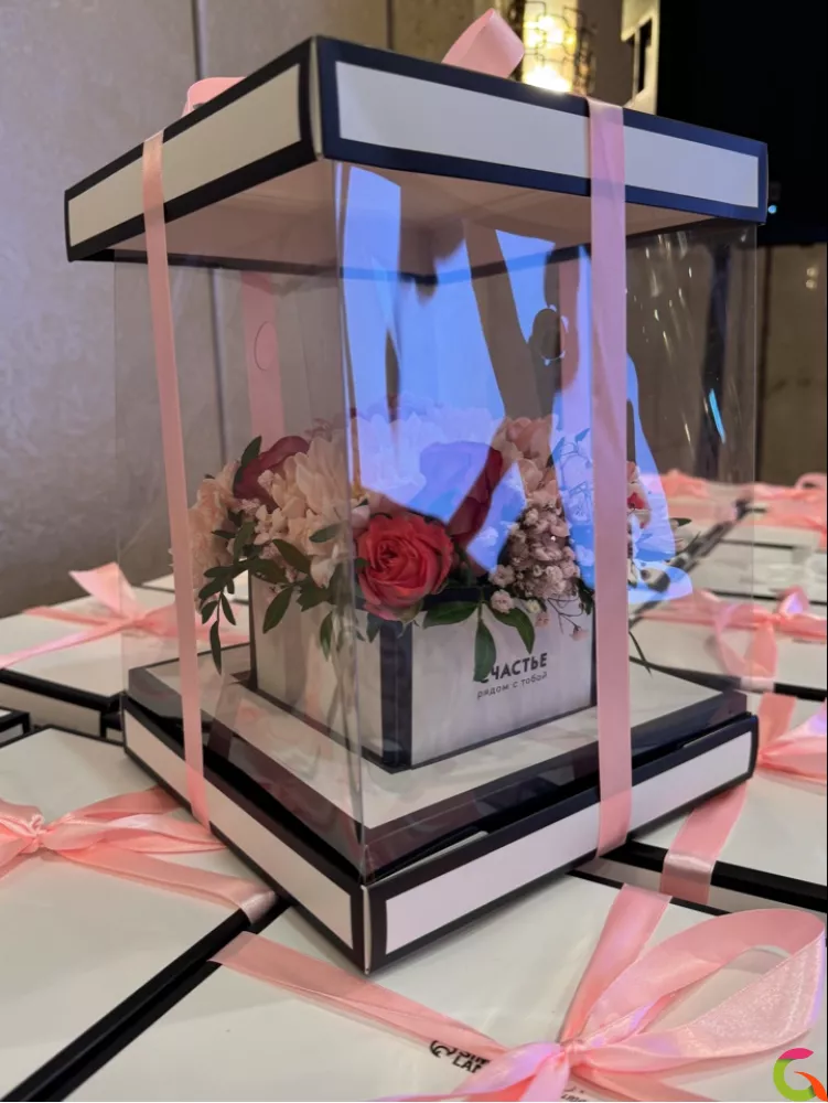 утонченный дизайн подчеркивает вкус дарителя и сохраняет свежесть цветов.