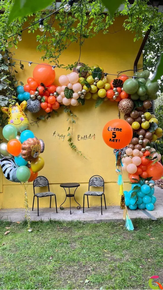 Не просто шарики, а целый зоопарк с фольгированными мордочками жирафов,