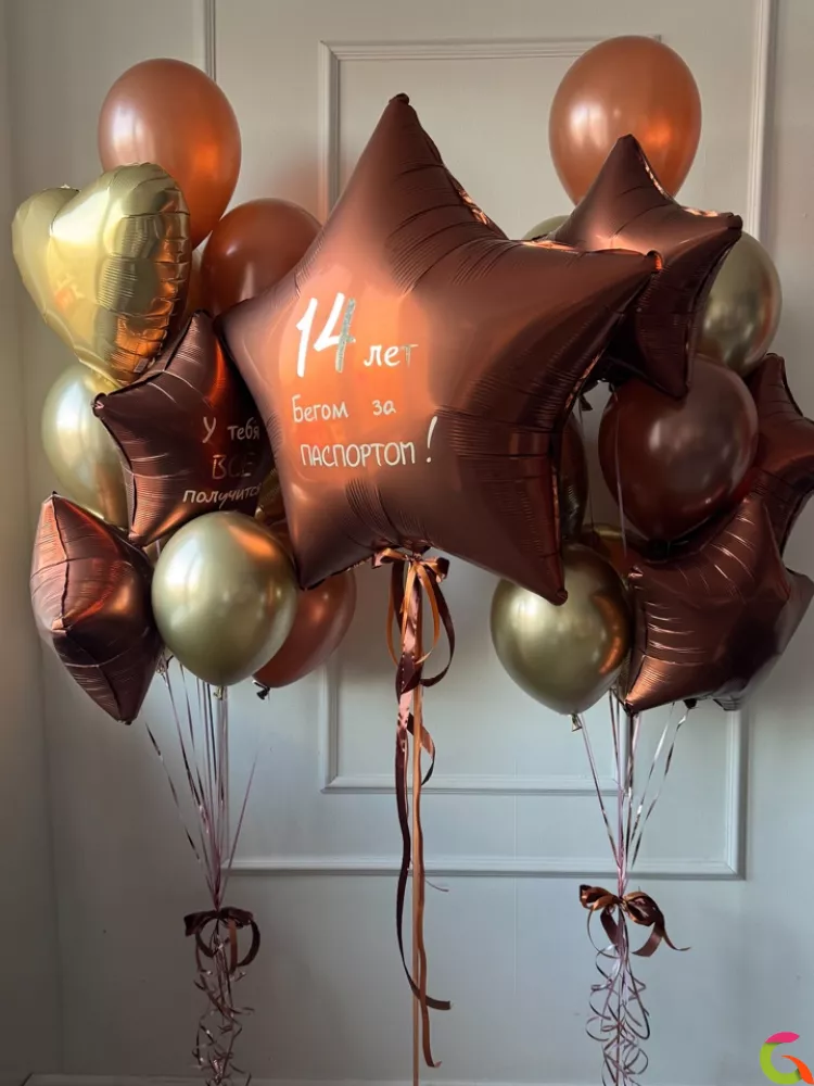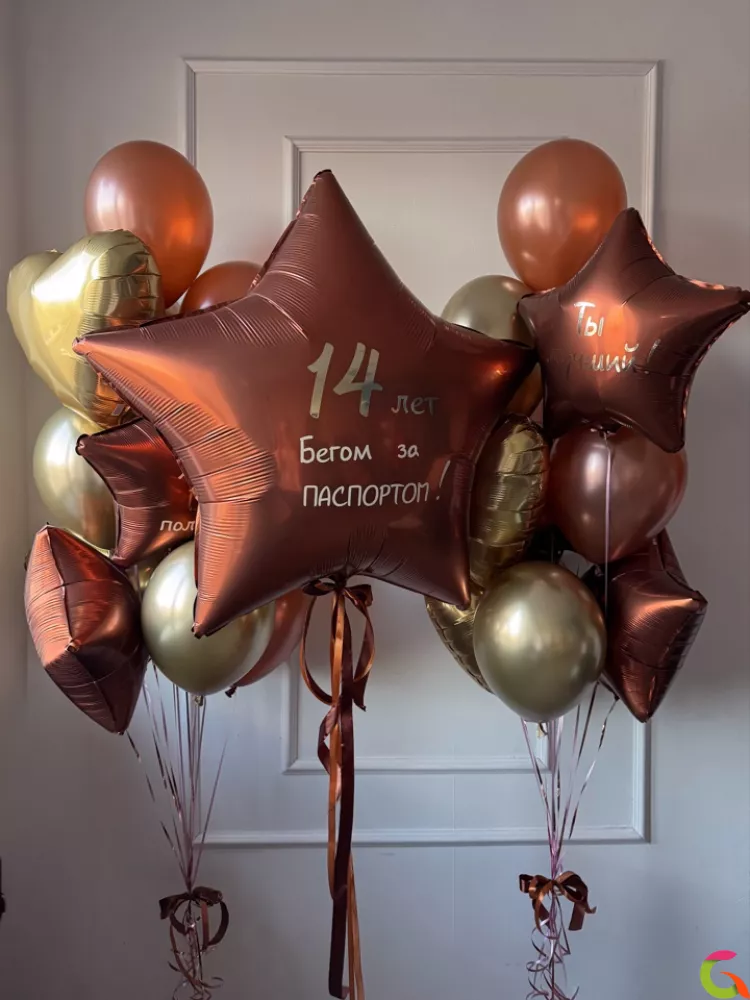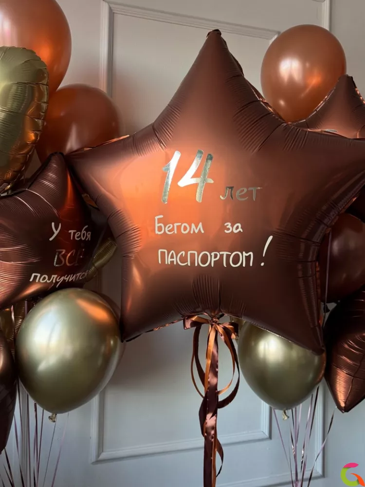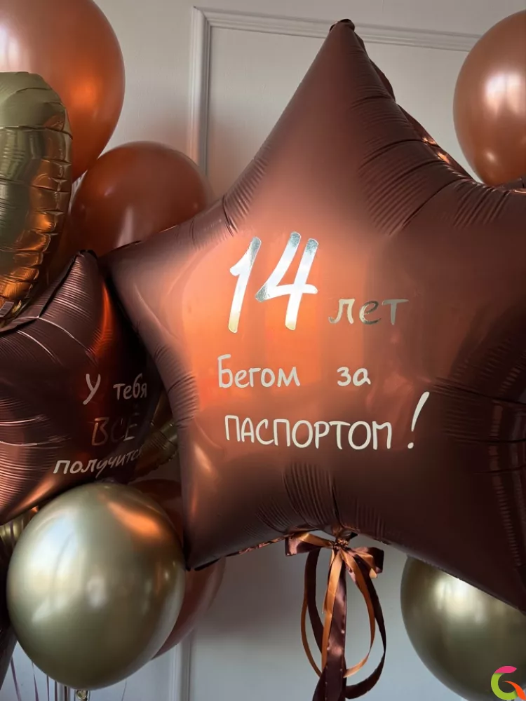 набор на День рождения 14 лет: Фонтан из 10 шаров + Большая звезда с надписью