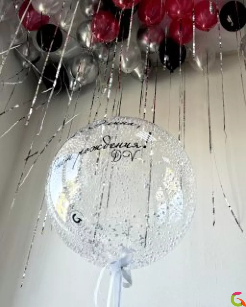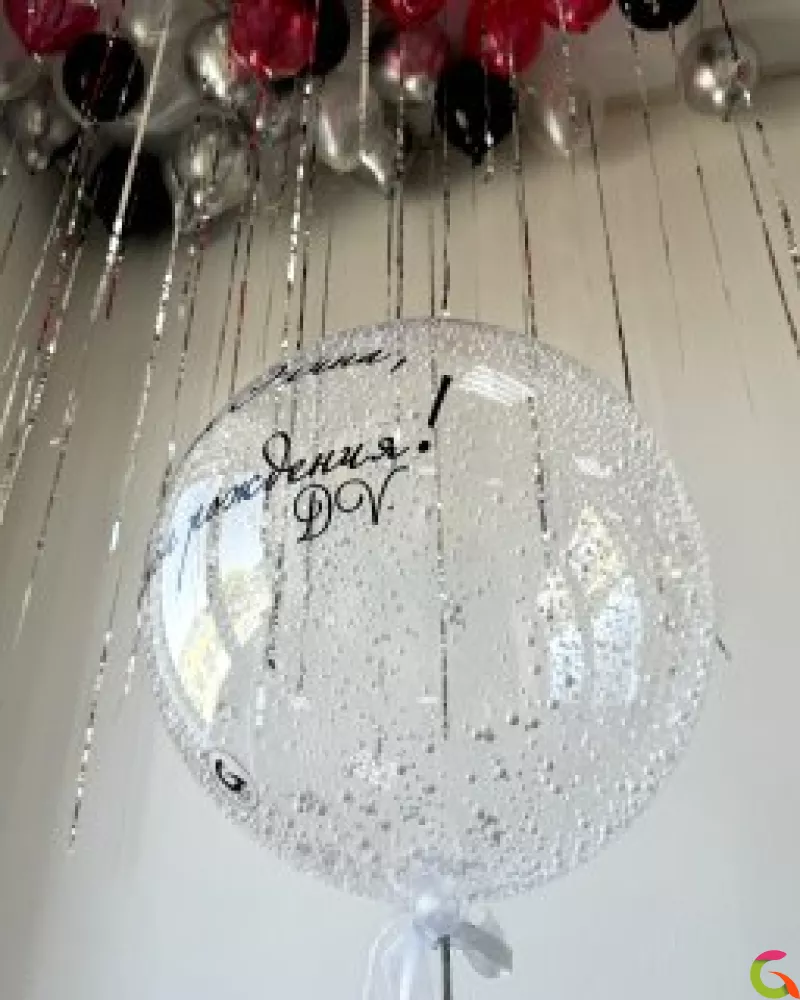 - Бабл 18" с индивидуальной надписью и конфетти на грузе - 1 шт;
